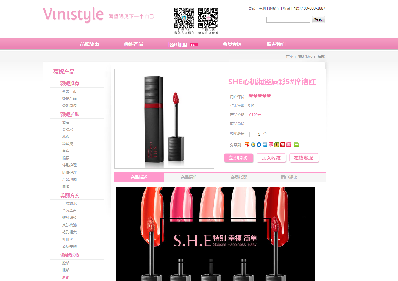 “薇妮vinistyle”寓意“薇妮的百變風格”,是蘇美連鎖旗下面向年輕時尚女孩的化妝品品牌。自2009年進入市場后以平均3天開一家店的速度快速覆蓋全國26個省市,目前已擁有將近500家專賣店(數字每月仍在激增中)。