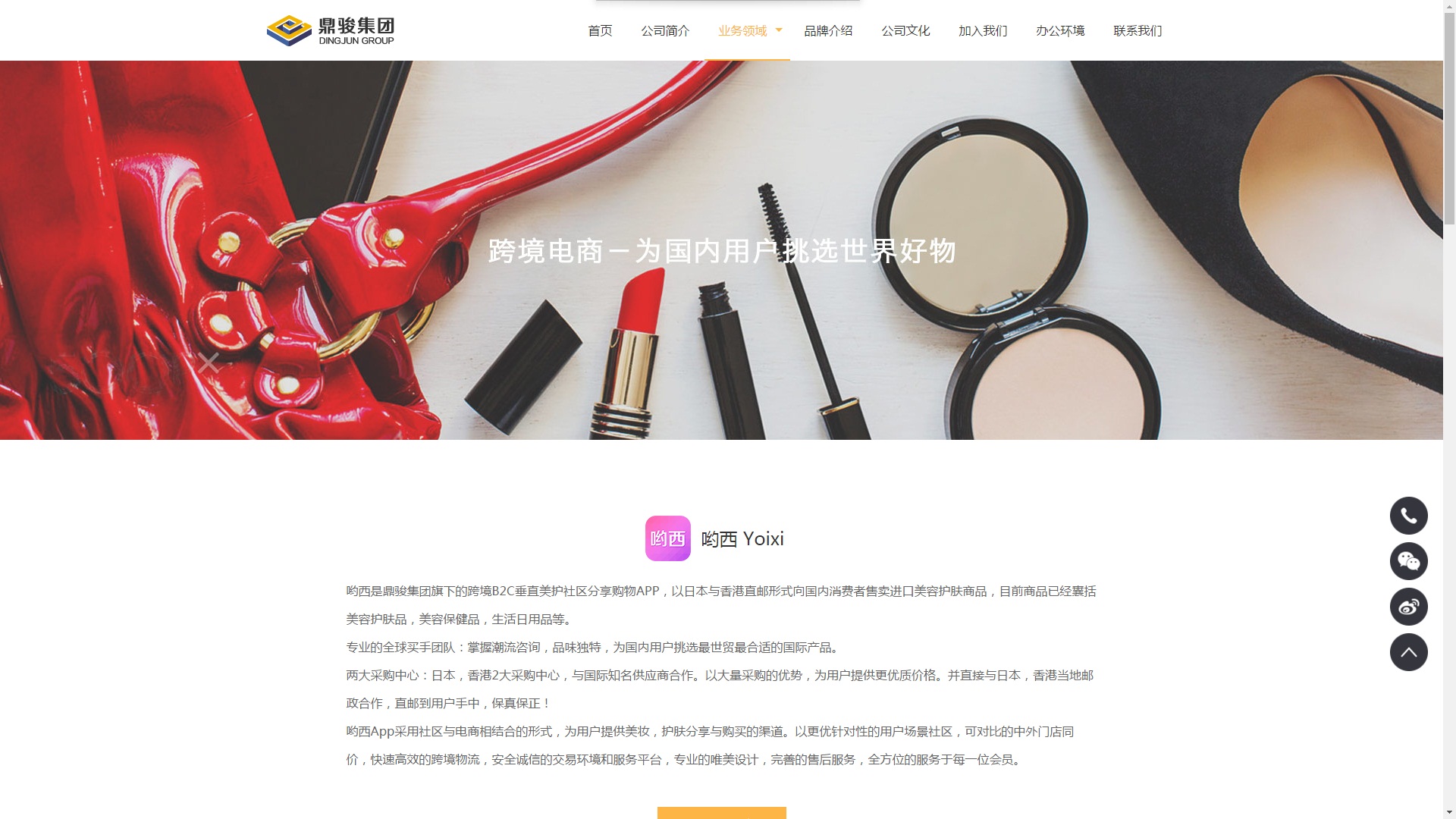 鼎駿成立于2004年,從傳統電商起步,核心業務涉及腕表、服飾、眼鏡、母嬰產品等多個領域,具有良好的產品基礎和市場競爭優勢。鼎駿秉持集團化、多元化業務發展戰略,集線上和線下、國內和海外、獨立垂直跨境平臺和全網平臺,全方位對品牌進行開發、包裝、銷售,并涉足海外拓展及投資,開始進軍商業地產領域。鼎駿正逐步發展成為亞太區最具影響力和知名度的企業。