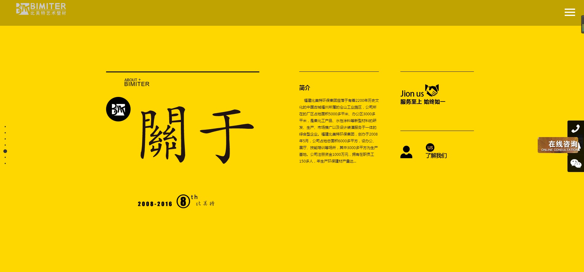 福建比美特環保集團座落于有著2200年歷史文化的中國古城“福州”所屬的倉山工業園區,公司所在的廠區占地面積5000多平米、辦公區3000多平米,是集化工產品、水性涂料等新型材料的研發、生產、市場推廣以及設計裝潢服務于一體的綜合型企業。福建比美特環保集團,創辦于2008年5月,公司占地總面積6000多平方,設辦公、展廳、技能培訓等場所,其中3000多平方為生產基地。
