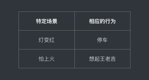 這里“怕上火”就是那個紅燈,而“想起王老吉”就相當于停車。