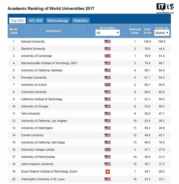 從榜單來看,2017全球大學學術能力前20強中,英美高校占據了19個席位,哈佛大學連續15年排名第1,斯坦福大學排名第2,劍橋大學第3,麻省理工學院第4,另外一所進入前20的大學是蘇黎世聯邦理工學院(又名瑞士聯邦理工學院)。