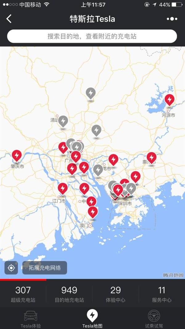 在特斯拉小程序中,你可以一鍵查詢特斯拉門店、充電站位置。
