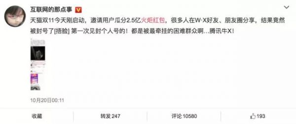 騰訊真的是封殺了“火炬紅包”,要在雙十一這個時間點給阿里一個下馬威嗎?