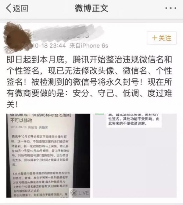 恐怕有的人還記得,17號,微信團隊突然出了一條通知,以平臺部分功能維護的名義,禁止微信用戶修改頭像、昵稱和個性簽名。當時大家都猜測,是大會期間輿情檢測升級的需要。
