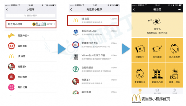 廣州微信小程序開發阿拉丁統計平臺數據顯示,通過「附近小程序」訪問麥當勞小程序的用戶中新用戶占比高達 94%。在麥當勞小程序所有新用戶中,通過「附近小程序」入口進入的用戶占比達 23%,是小程序新用戶的主要來源。