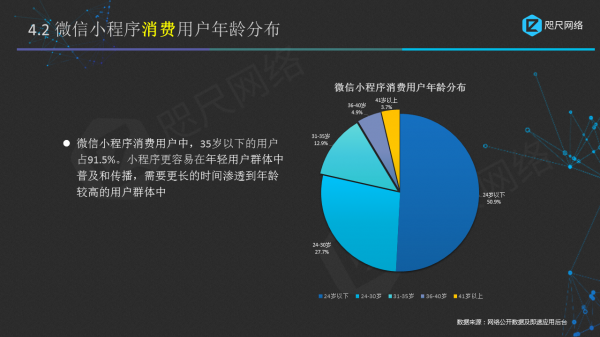 報(bào)告指出,微信小程序消費(fèi)用戶中,女性占比偏高,達(dá)到57.35%;年齡段也基本集中在35歲以下。這一消費(fèi)群體的中高付費(fèi)意愿較高,因此廣州微信小程序開(kāi)發(fā)也會(huì)推動(dòng)小程序中大宗消費(fèi)需求的增長(zhǎng)。