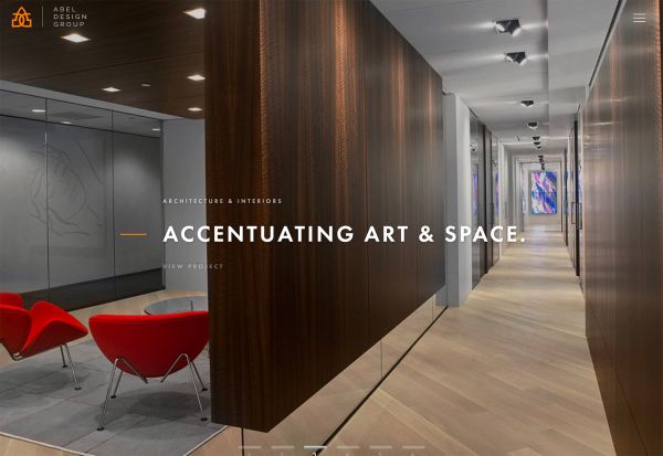 Abel Design Group 這個網站中,設計師并沒有直接采用傳統意義上的下劃線,而是使用橙色的線條置于文本前方,起到了和下劃線相似的功用。