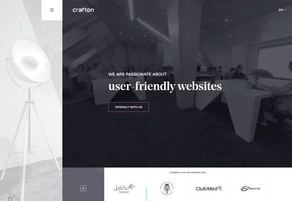 就像下面的 Crafton 這個網站,稍稍加入一點紅色,就讓整個設計一下子鮮活了起來。