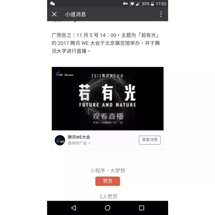 1. 雙向選擇廣告疑似現(xiàn)身公眾號(hào)