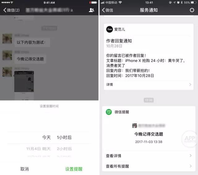 在此次更新中,微信適配在同日發(fā)售的 iPhone X,并支持面容 ID(Face ID)支付。此外,新版本還增加消息延后提醒、查找聊天中交易信息等功能。