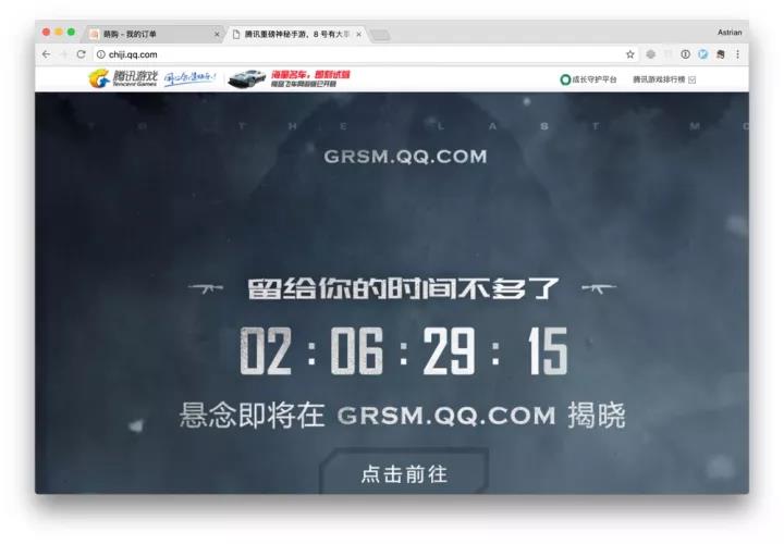 目前,該域名會(huì)引導(dǎo)用戶到 grsm.qq.com(域名意義疑似「光榮使命」),頁(yè)面中的二維碼是名為「騰訊重磅手游 8 日見」的公眾號(hào)。