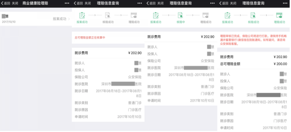 圖片說明:患者在申請成功后,可通過微信隨時查詢理賠審核進(jìn)度