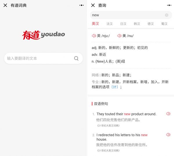 詞典類小程序使用頻率不高,但又是學習或旅行中必不可少的東西,很符合小程序“用完即走”的理念。“網易有道詞典”支持多語種。廣州微信小程序開發用戶既可以用“網易有道詞典”搜索單個單詞的意思,也可以翻譯句子。