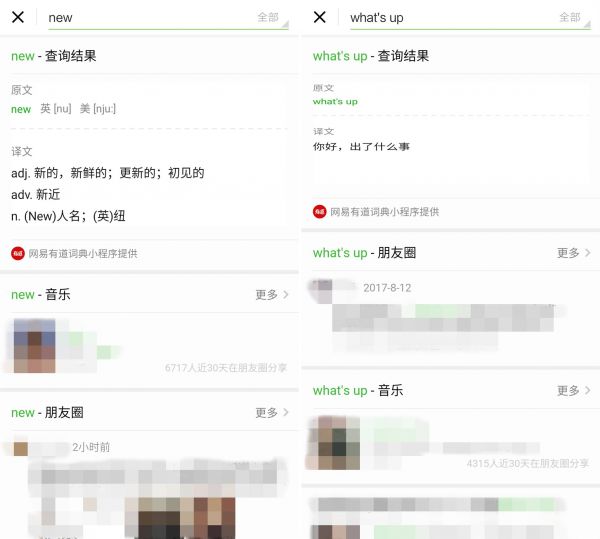 在微信搜索框里輸入英文,會出現網易有道詞典小程序提供的翻譯結果。據悉,這是廣州微信小程序開發小程序官方正在內測的微信服務查詢。