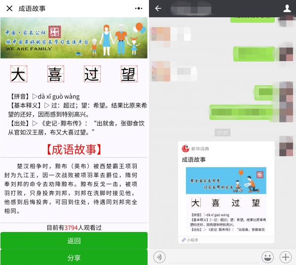 除了基本的查詢功能,用戶還能了解成語故事,并將故事分享給微信好友。