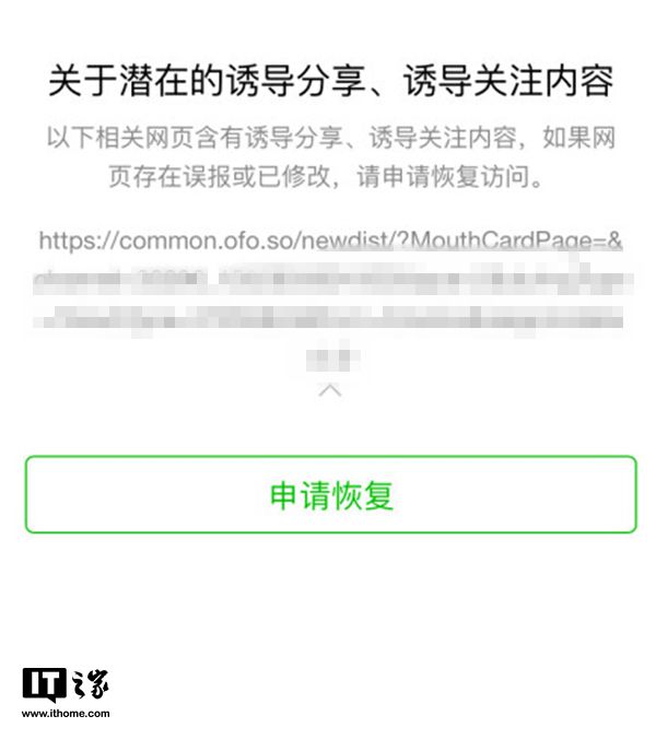 8月19日消息 從昨天晚上開始,多位網友爆料稱微信封殺了ofo小黃車在微信當中的多種功能,通過微信掃描ofo的二維碼,會提示“網頁包含誘導分享、誘導關注內容,被多人投訴,為維護綠色上網環境已停止訪問。”