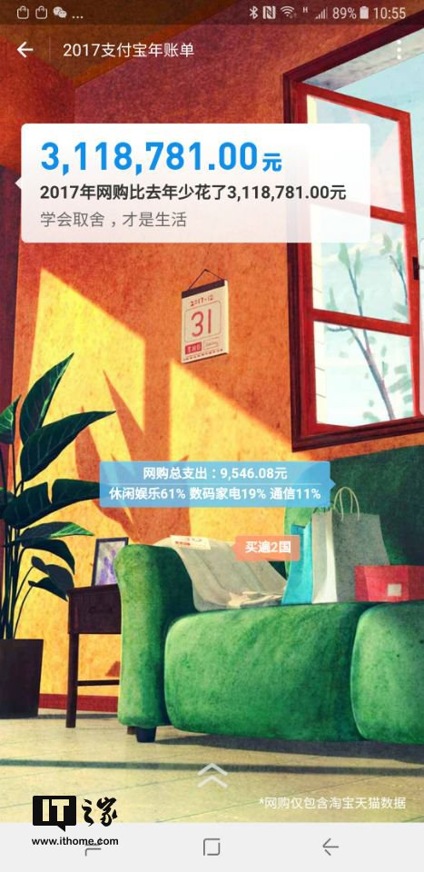 IT之家1月3日消息 今天支付寶App如期公布了2017年度賬單,看看你今年剁手花了多少錢吧?在支付寶App的首頁或賬單里即可查看具體內容。