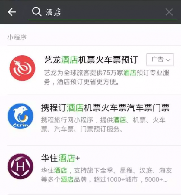 很多人不禁要對此舉的意義發問:以微信的算法而出的搜索結果,廣州企業網站建設公司豈不是嚴重遏制了新生小程序的后來者居上?這樣即使定義了關鍵詞,對推廣而言并沒有實質性的意義?微信官方自然也想到了與之相輔相成的策略,我們甚至可以認為后來的這步棋才是微信的本來目的。那就是于6月中旬首次出現于人們視野中的「搜索關鍵詞廣告」