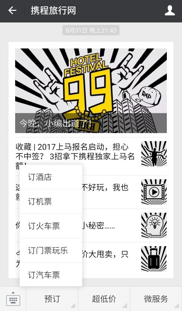 APP可以分享對應的小程序卡片到微信,點開后則會進入小程序。如從攜程app點擊“好友幫搶票”分享到微信,好友點擊卡片后便會跳轉至幫好友加速搶票的小程序頁面。