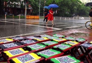 北京街頭出現了一種“共享馬扎”,可供人們免費使用。北京晨報記者在東三環長虹橋北公交站看到,“共享馬扎”與普通馬扎無異,僅多了一個二維碼。