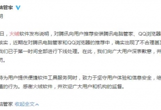 近日,有用戶反映,安全軟件火絨對騰訊官方程序報毒,作出自動攔截等處理。對此,火絨方面給了詳細說明,解釋這非誤殺、誤報,而是騰訊QQ推廣自家產(chǎn)品時,存在功能嚴重越位、類似病毒傳播行徑等問題。
